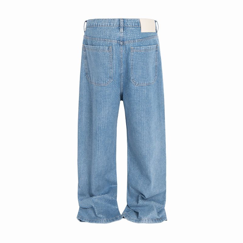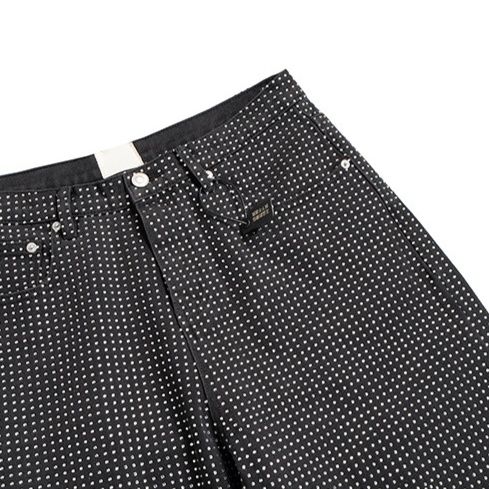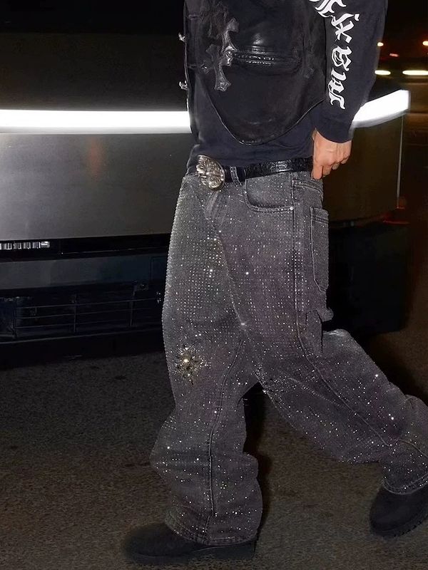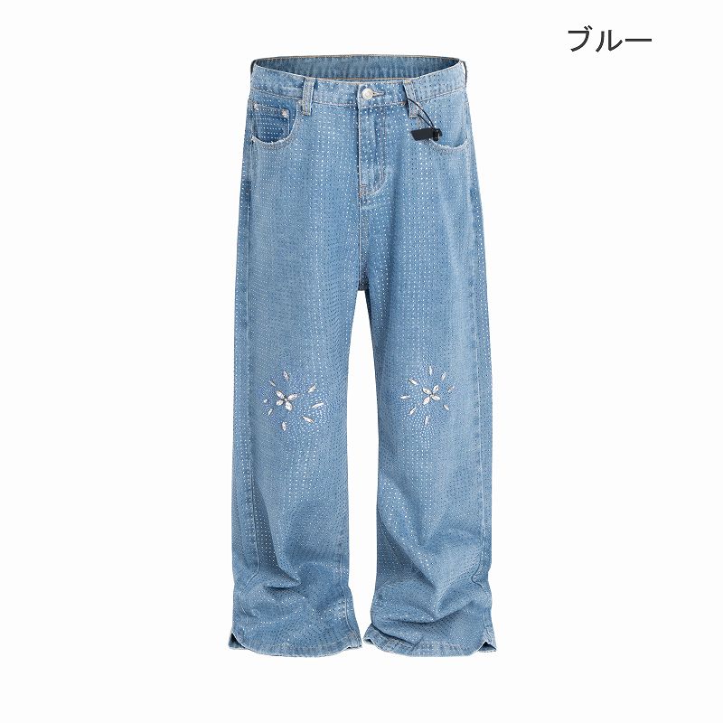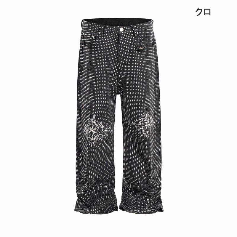 星型ラインストーンが輝く個性的なメンズデニムパンツです。