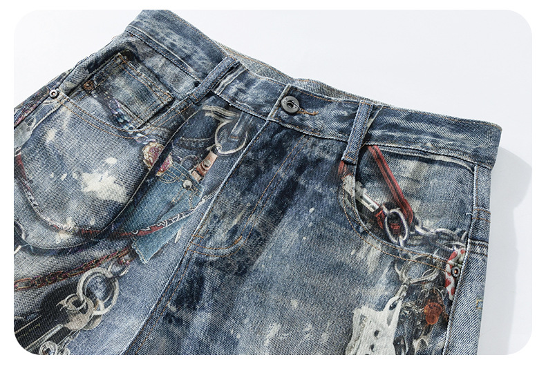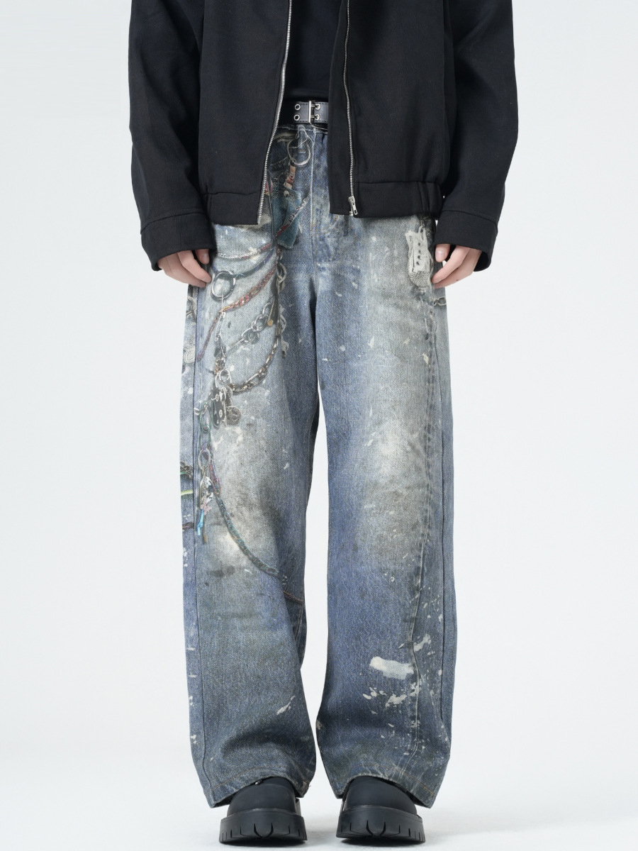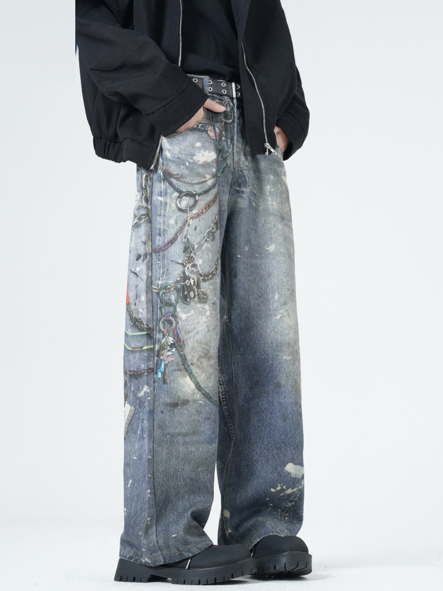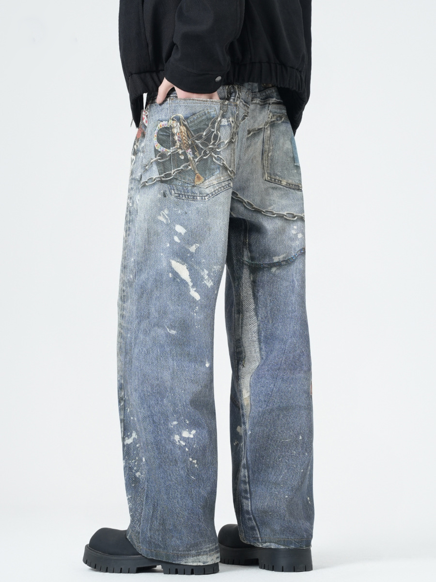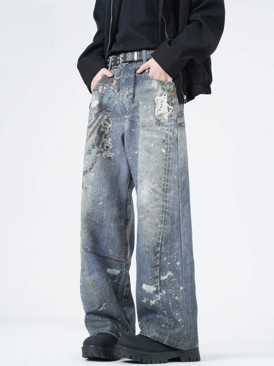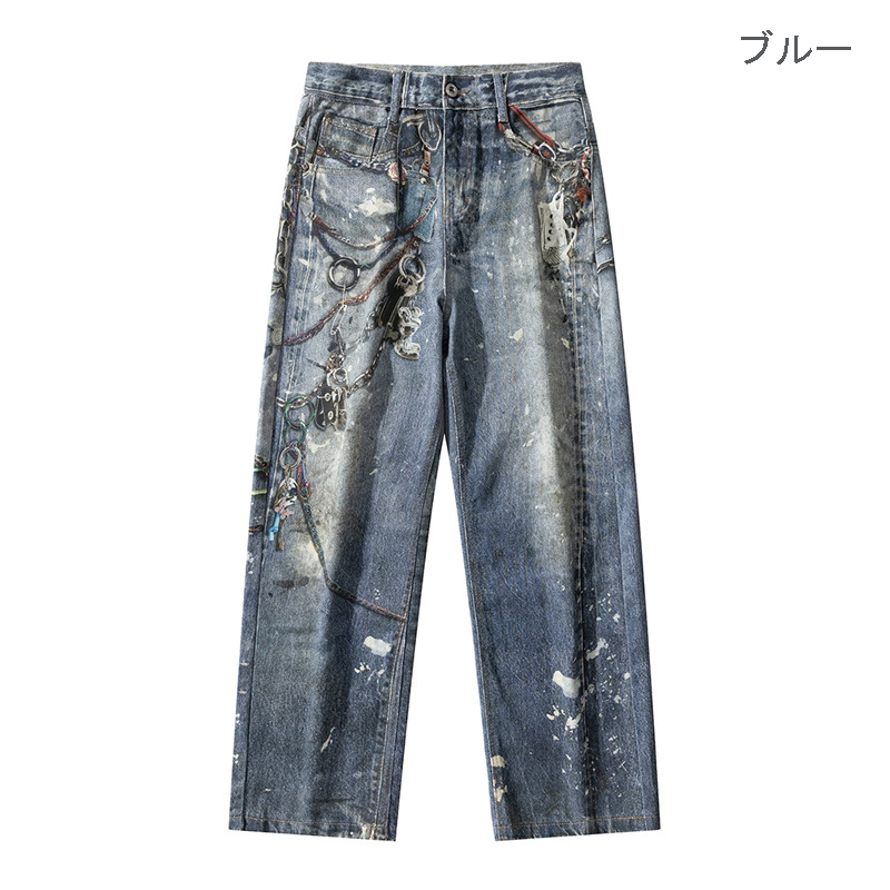 ダメージ加工とチェーン装飾でストリート感を演出。