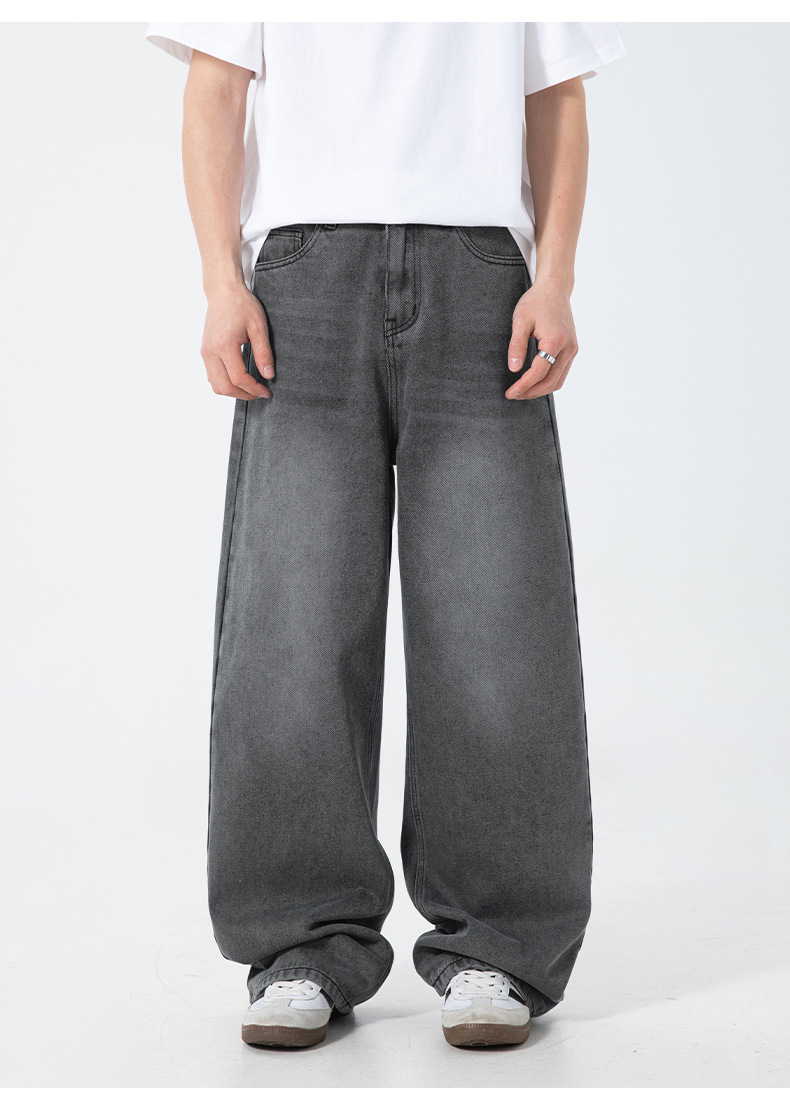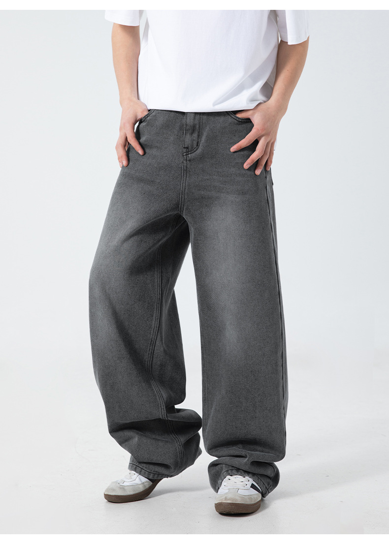 ヴィンテージ風のウォッシュ加工が施されたゆったりワイドシルエット。