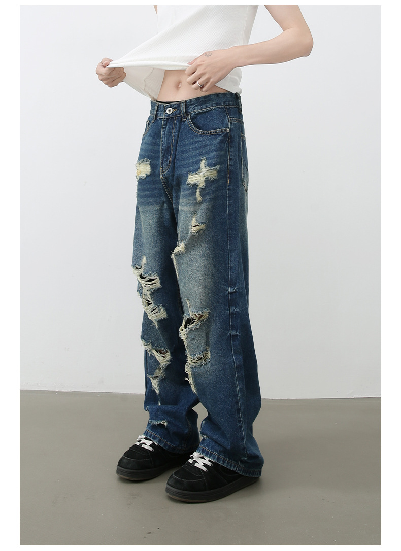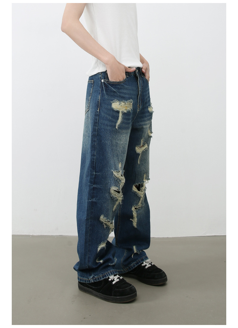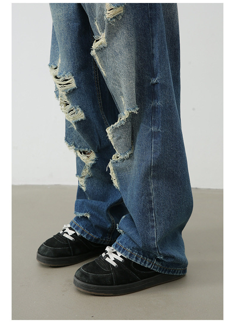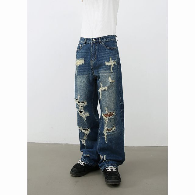 トレンド感満載のダメージ加工を施したメンズデニムパンツ。