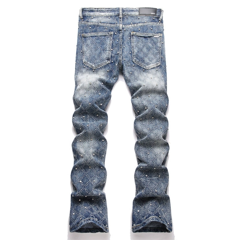 煌めくラインストーン装飾とフレアシルエットが特徴的な一本です。