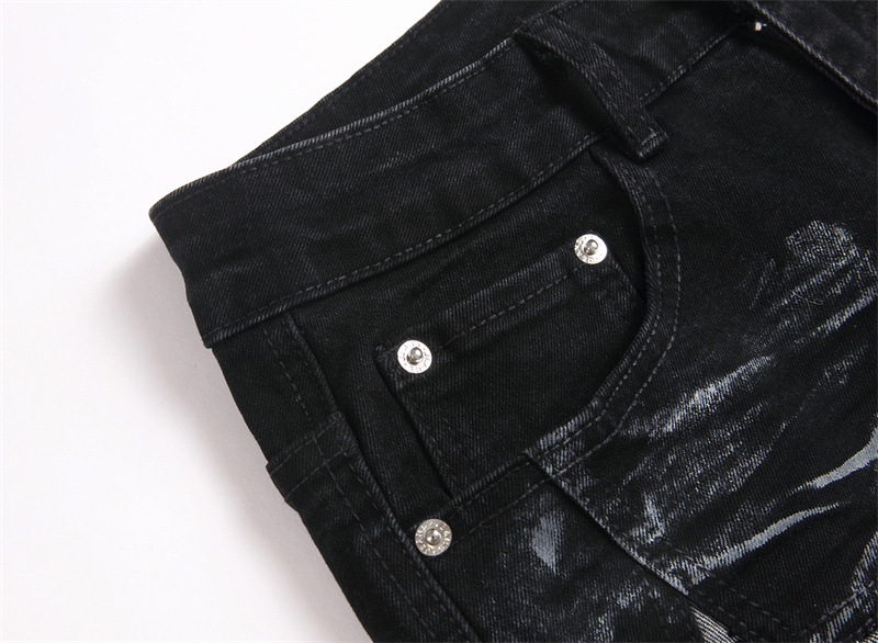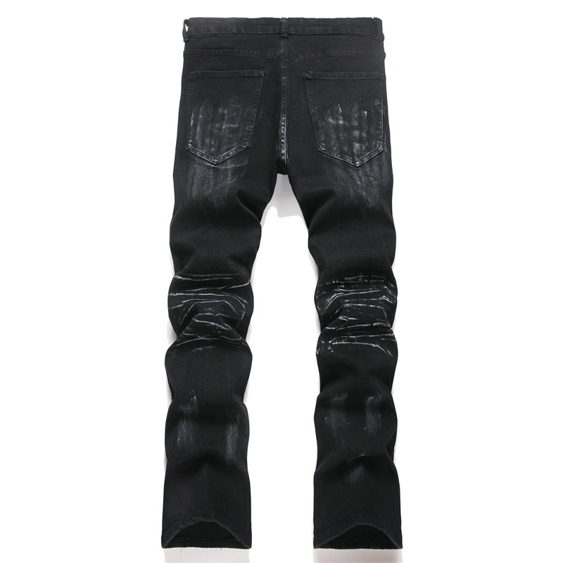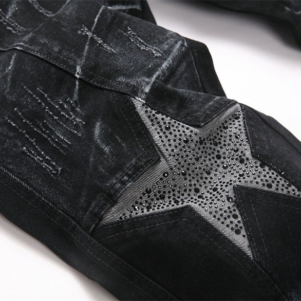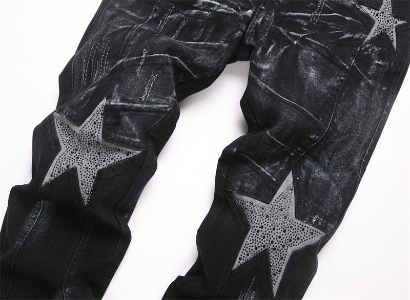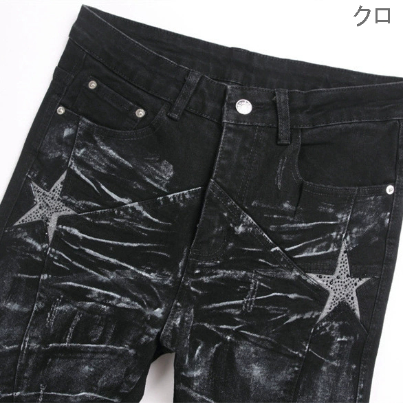 個性的な星柄装飾が印象的なメンズデニムパンツです。