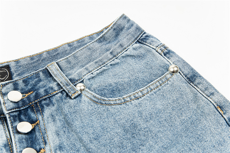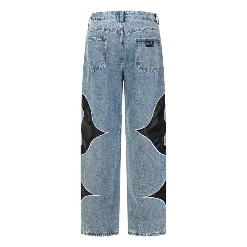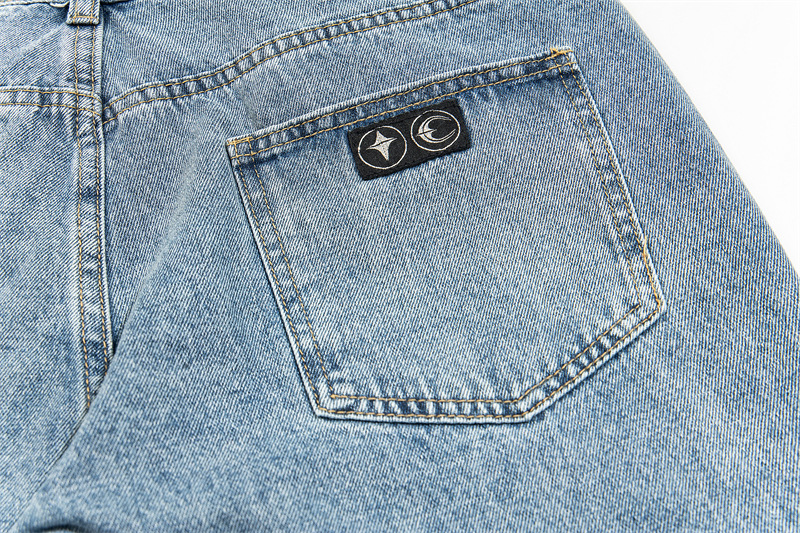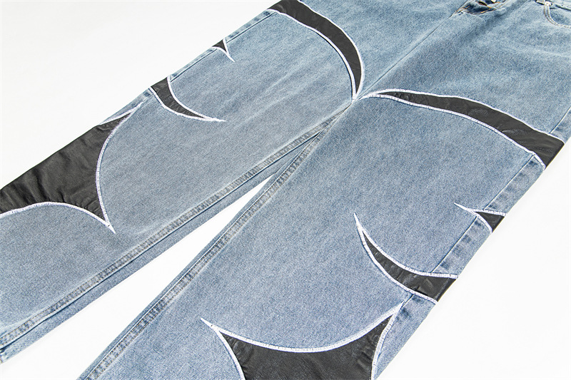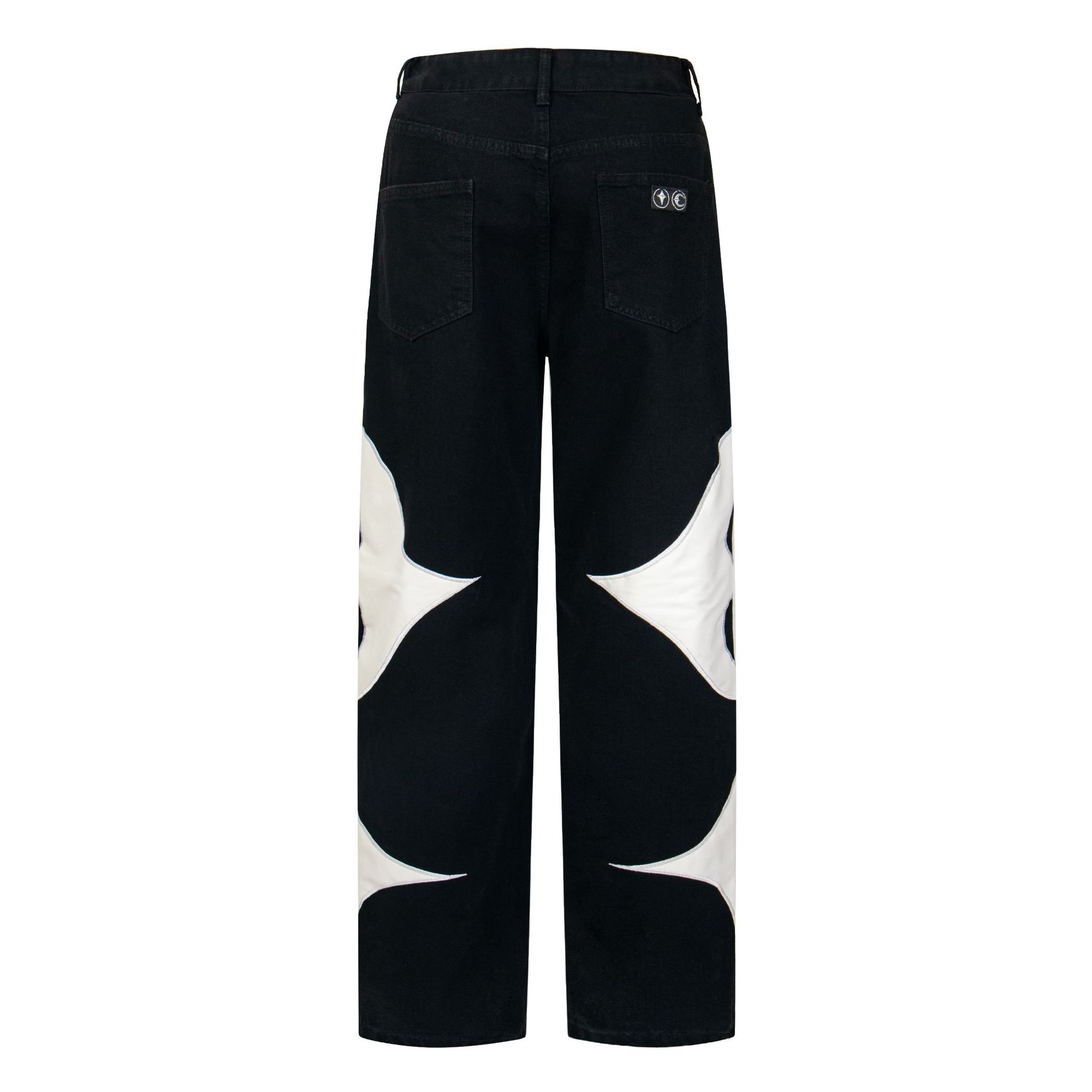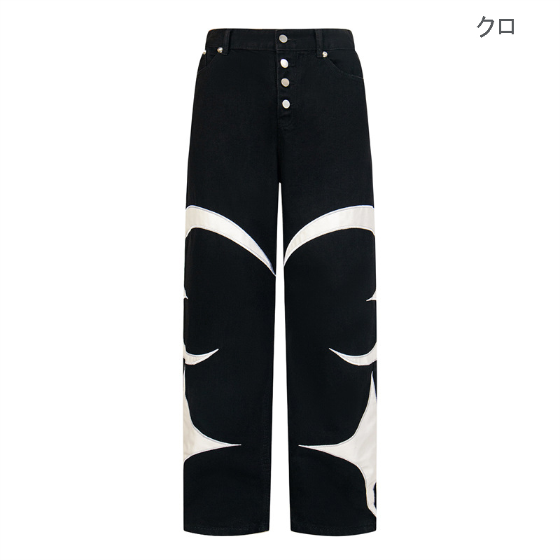 個性的な刺繍デザインが目を引くメンズデニムパンツ。